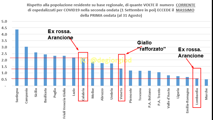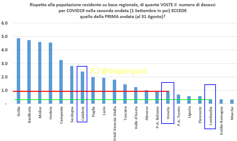 Rispetto alla popolazione residente su base regionale, di quante VOLTE il numero di decessi per COVID19 nella seconda ondata (1 Settembre in poi) ECCEDE