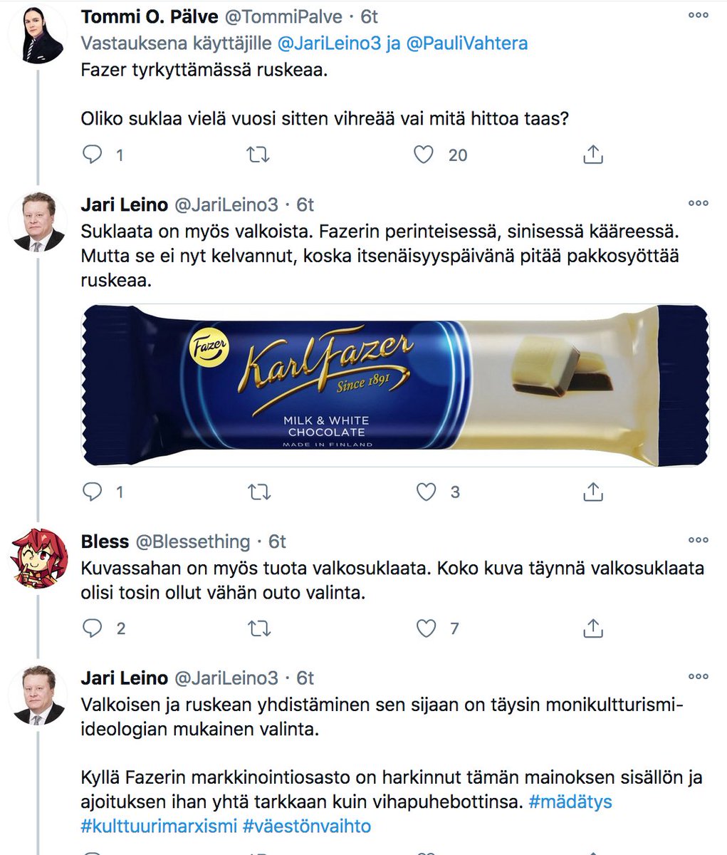 Itsenäisyyspäivän ketjussa seuraamme kansallismielisten eettisiä neuvotteluja havainnosta "suklaa on ruskeaa"