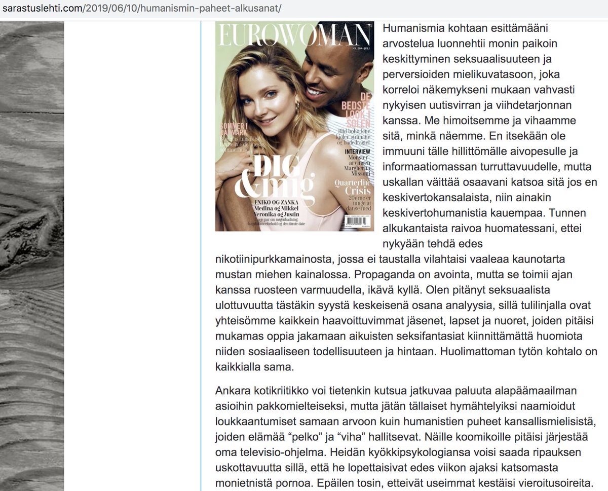Tästä tuli heti mieleen tuoreen Sarastus-esseekirjan alkusanat. Skenessä on vahvaa kokemista poliittisten vihollisten seksuaalisuudesta.