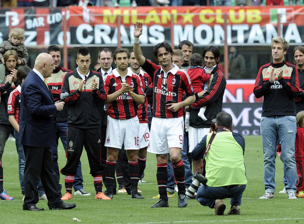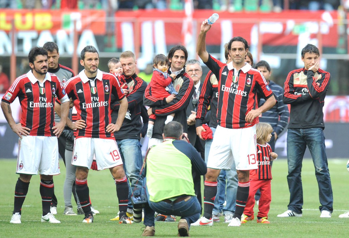 13 mai 2012 : à l’occasion d’un ultime match de Serie A remporté à domicile 2-1 face à Novare, les illustres Filipo Inzaghi, Clarence Seedorf, Gennaro Gattuso et Alessandro Nesta tirent leur révérence avec l’AC Milan