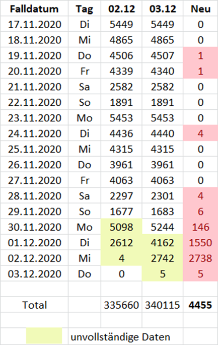 Die aktuellen Zahlen sind wegen den kommenden Nachmeld. unterschätzt.
