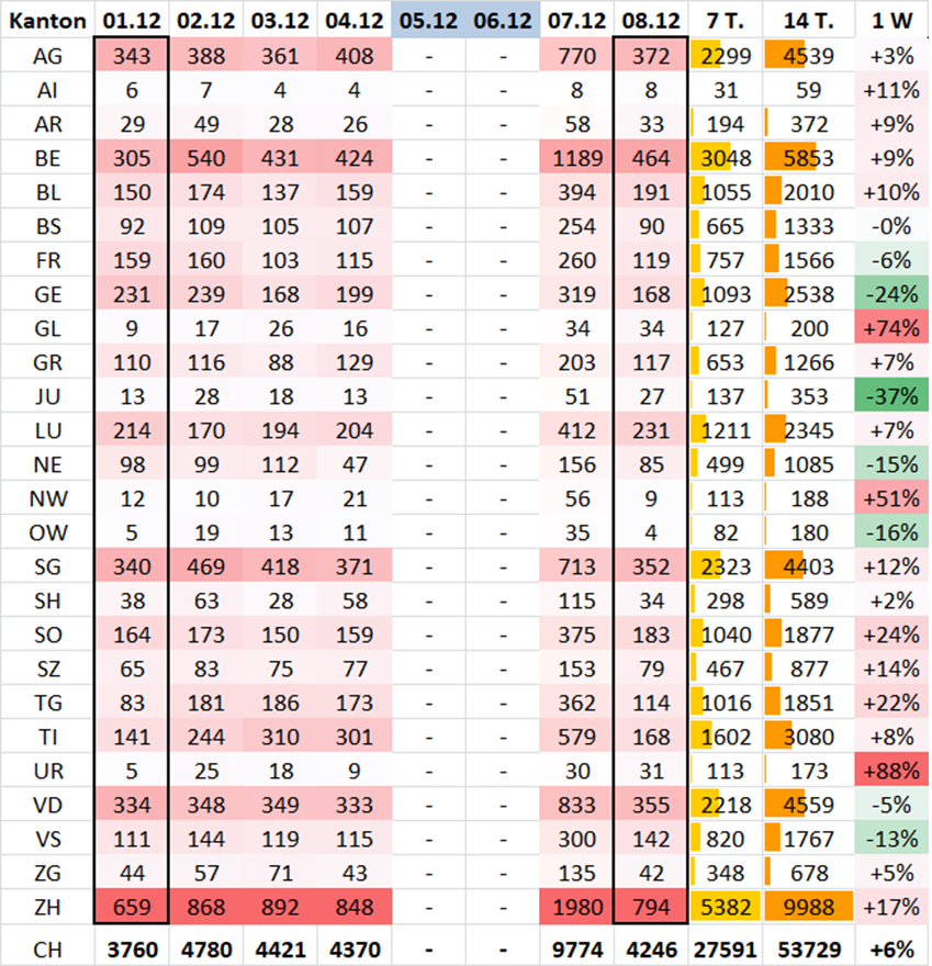 Die Fallzahl ist tiefer als an den letzten zwei Mi, wo 6'114 und 4'876 gemeldet wurden.