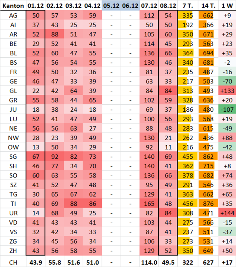 Die Fallzahl liegt zwischen den letzten zwei Fr, wo 4'946 und 4'312 gemeldet wurden.