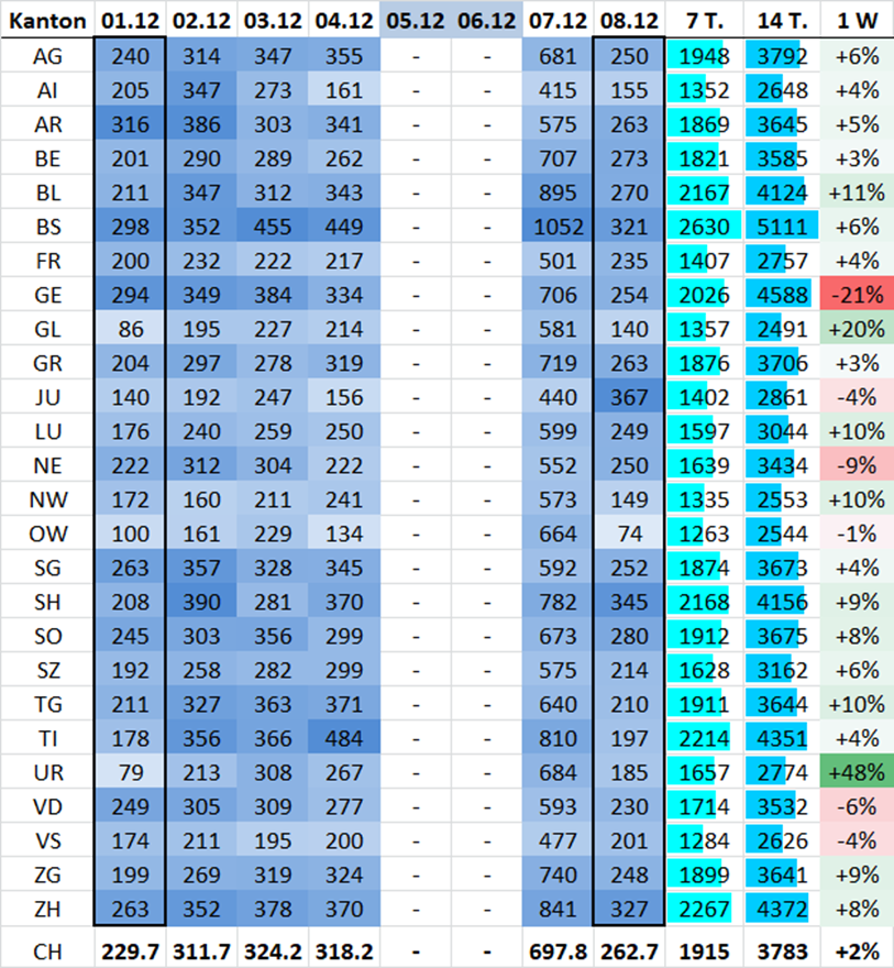 Die Fallzahl ist tiefer als an den letzten zwei Do, wo 5'007 und 4'509 gemeldet wurden.