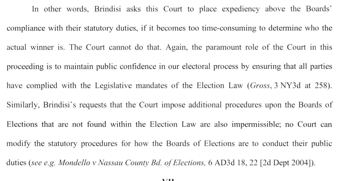 Here he lays into the BOEs once again for failing to follow NY Election Law, specifically as it relates to the ability of candidates to challenge ballots and commissioner objections 25/