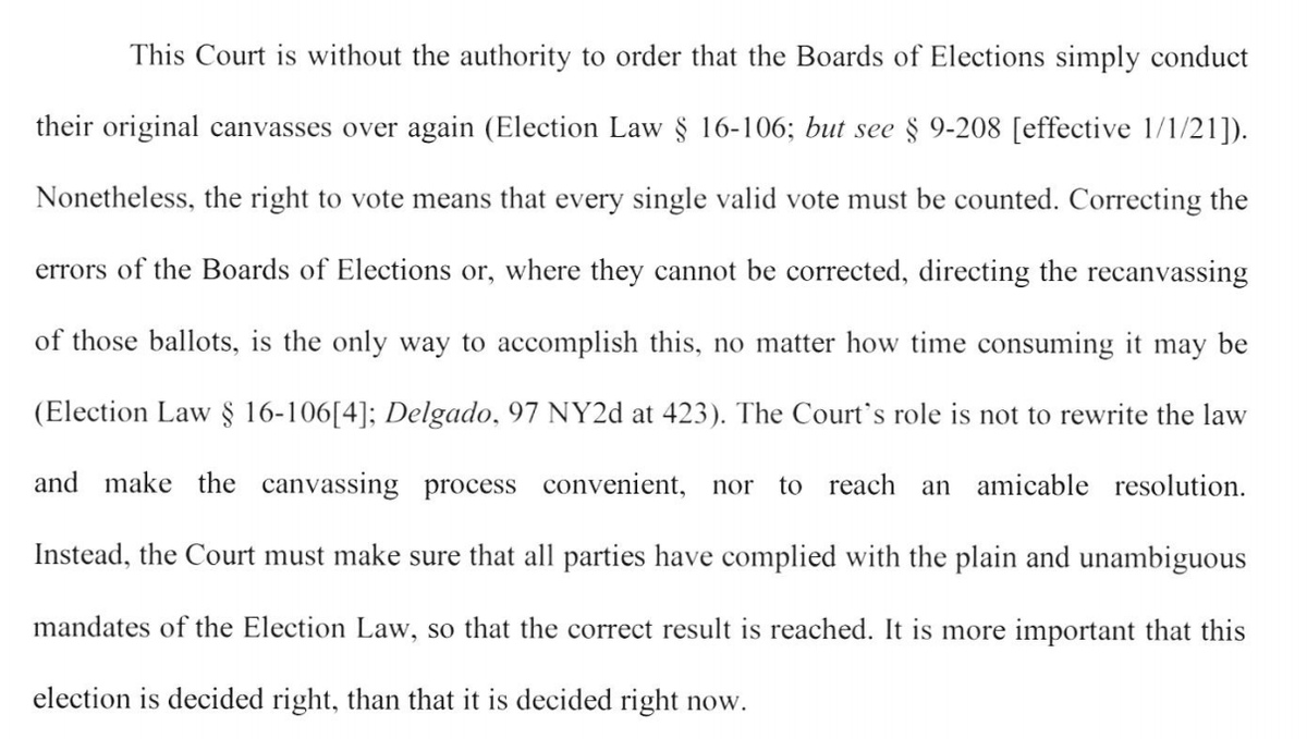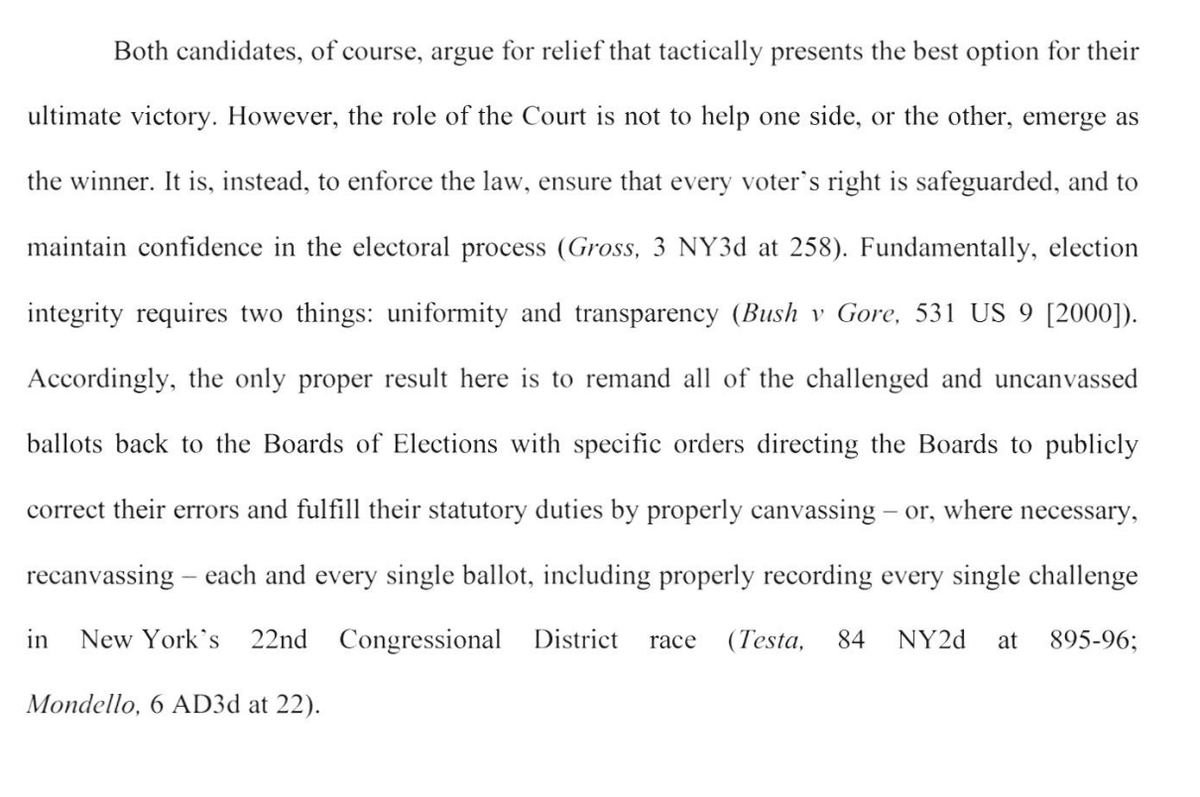 BIG: This is probably the most important section of all; Justice DelConte says all affidavits set aside in Oneida & Cortland, as well as the found Chenango ballots and any other ballots that might be found now, must be counted 26/