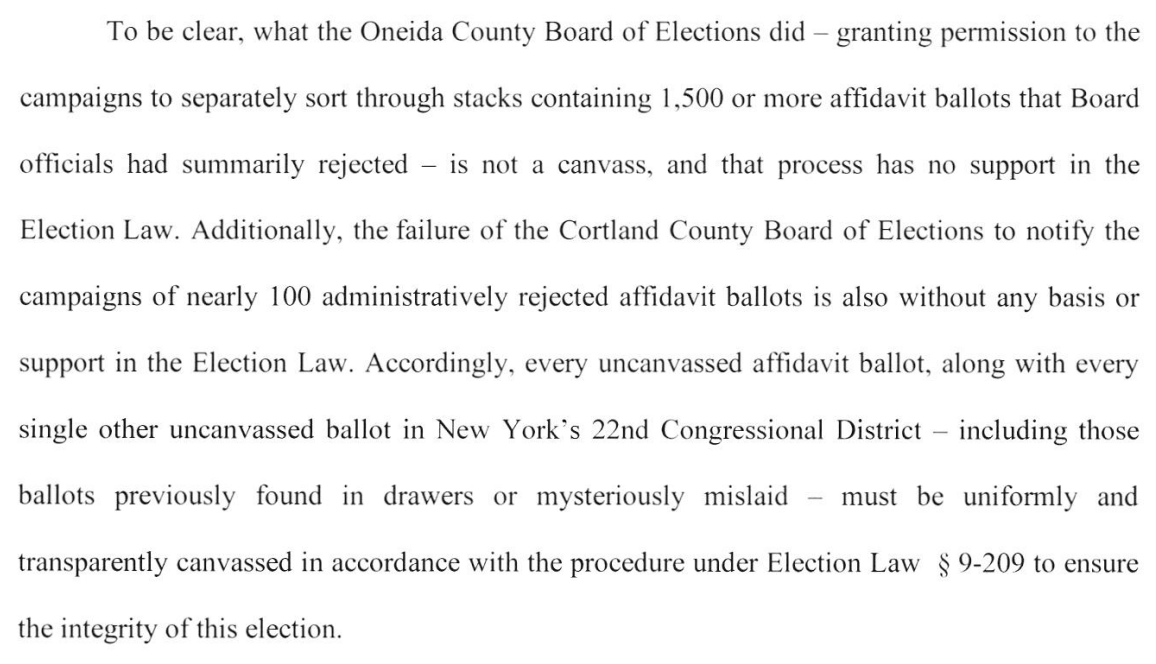 The Brindisi legal team filed first today, and tried to offer a stinging rebuke of Tenney's attempts to have the result certified. Certainly started out swinging 3/