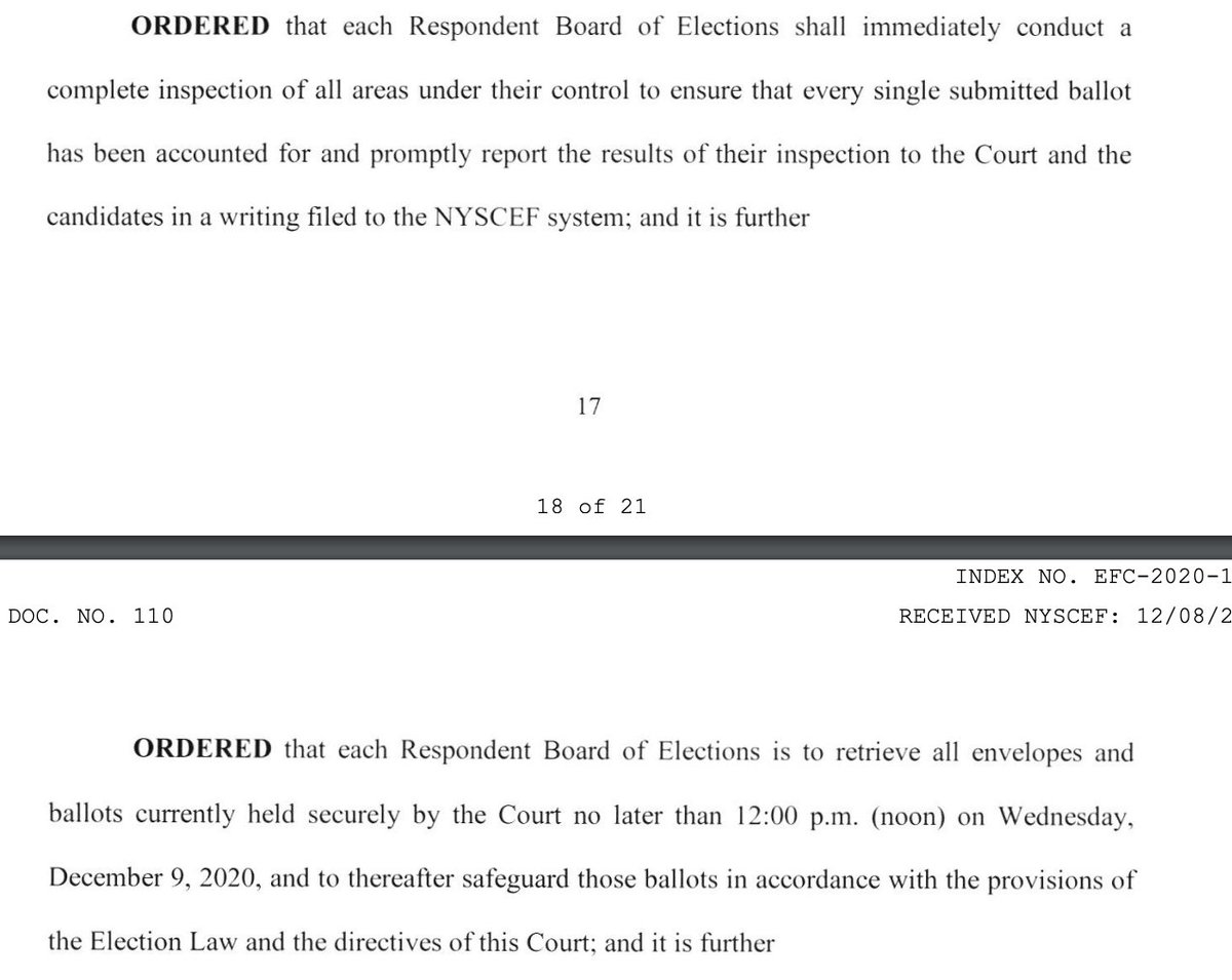 The justice denies @claudiatenney's motion to have the count certified, while partially denying and granting @ABrindisiNY's motion to have the counties fix their errors 4/