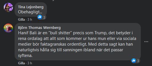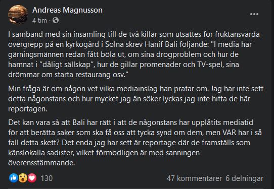 Och en som tycker att Magnusson kan väl fråga Bali själv. Det vore väl ÄNNU enklare att fråga honom antar jag? I stället för att skriva inlägg på fb och svara på varför han inte frågat...?