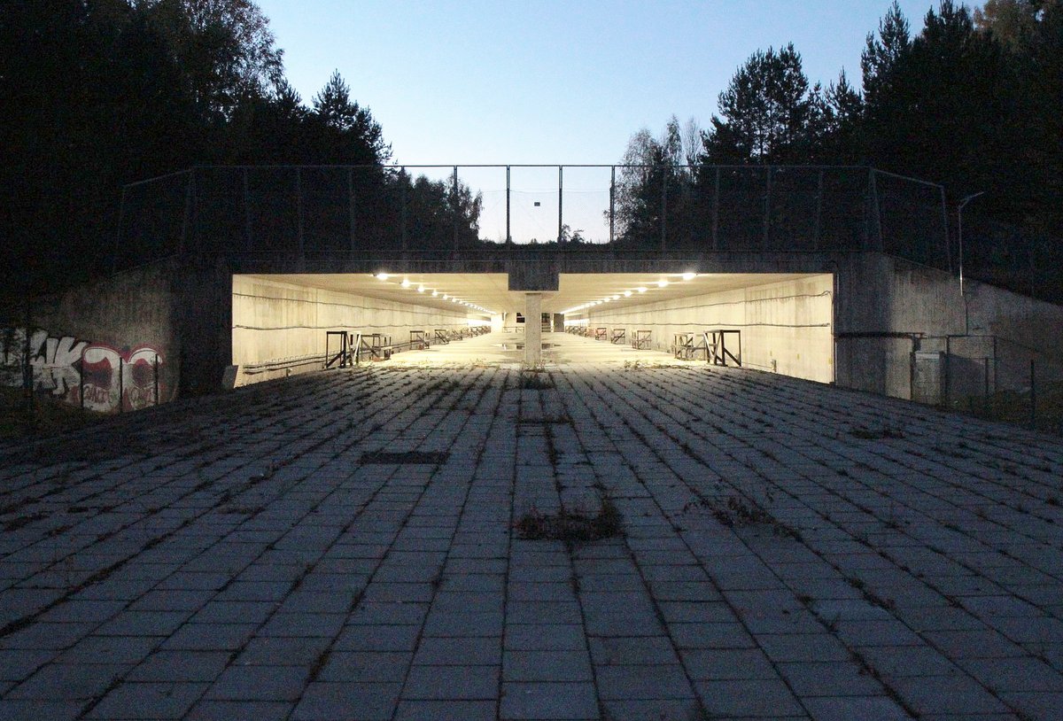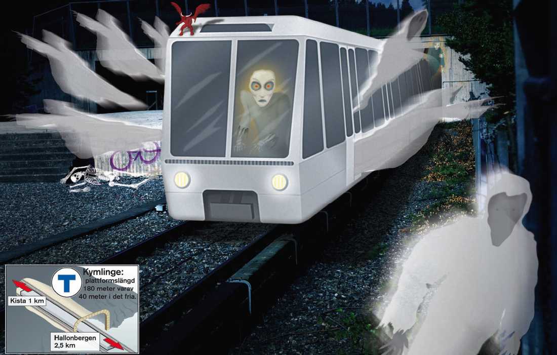 Metro kulki nyt Tukholmasta Akallaan, mutta Kymlingen asema siinä välissä jäi kesken, moderniksi betonibrutaaliksi raunioksi.
