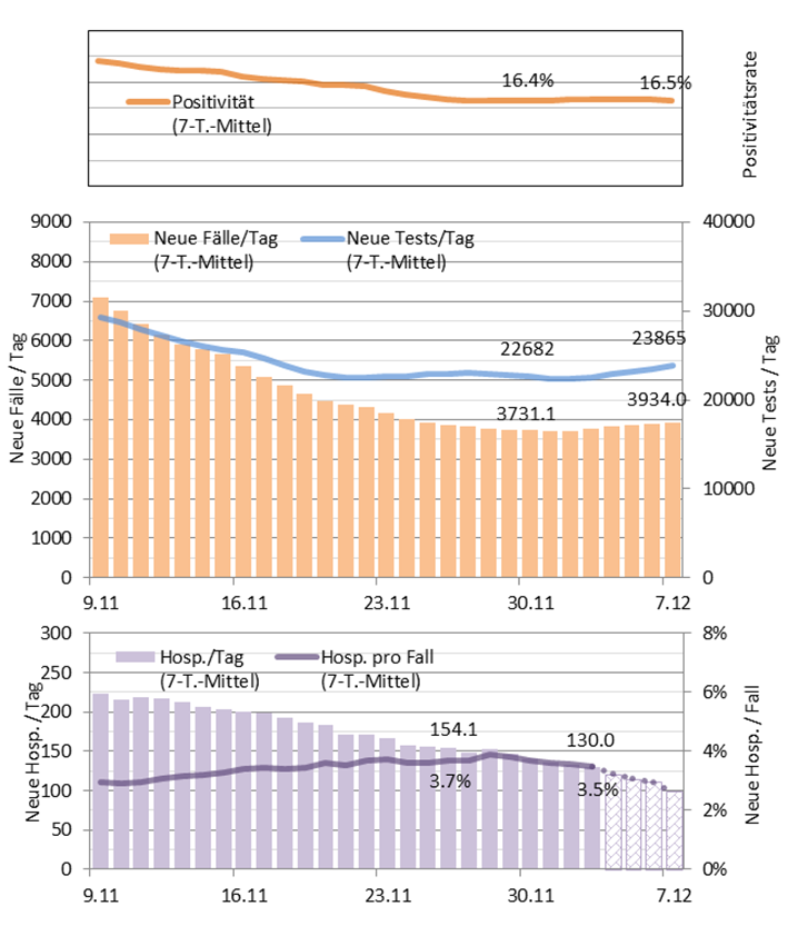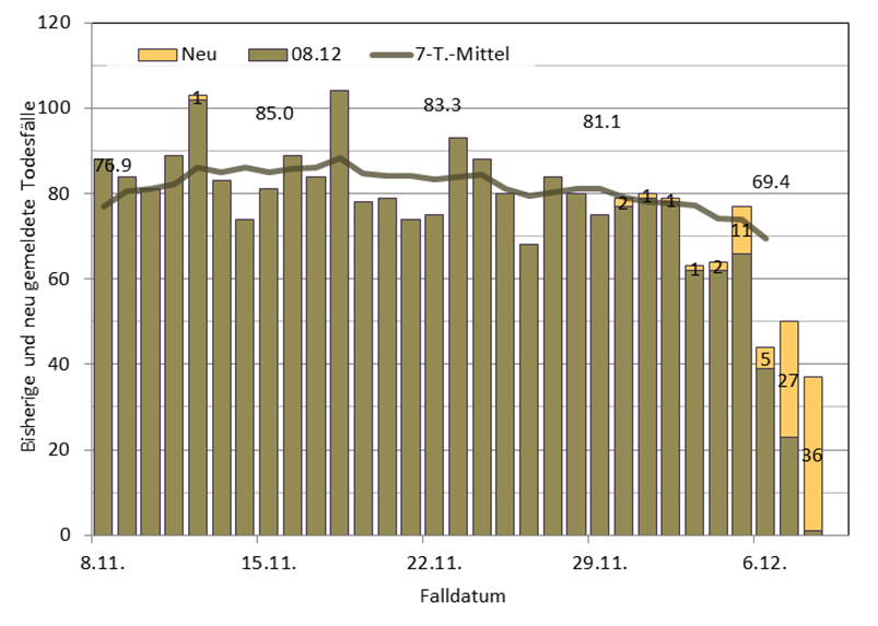 Epidemiologische Kurve der letzten 4 Wochen (bis 7.12./3.12.):