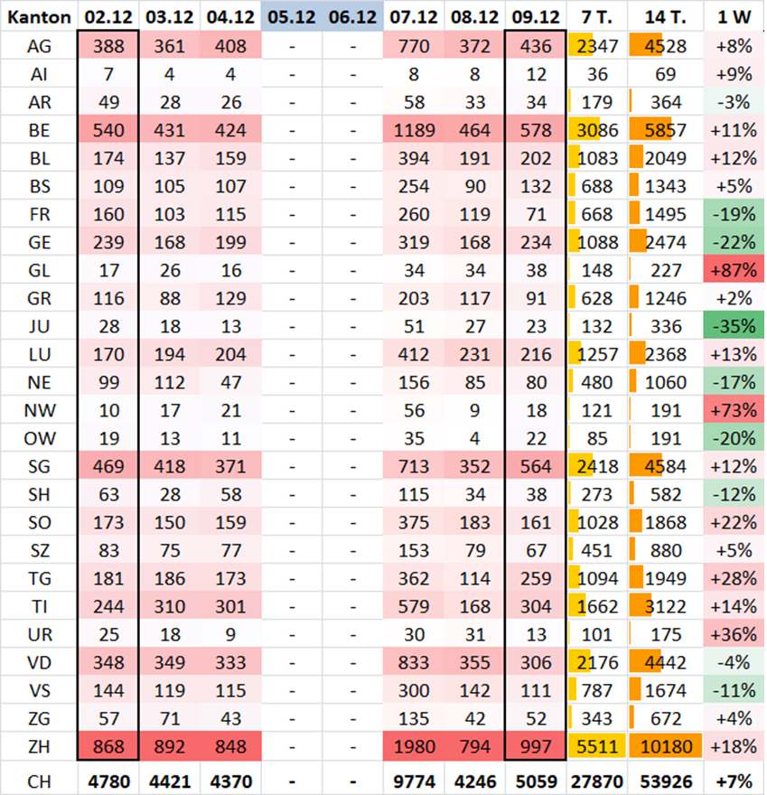 Die Fallzahl ist höher als an den letzten zwei Mi, wo 4'876 und 4'786 gemeldet wurden.