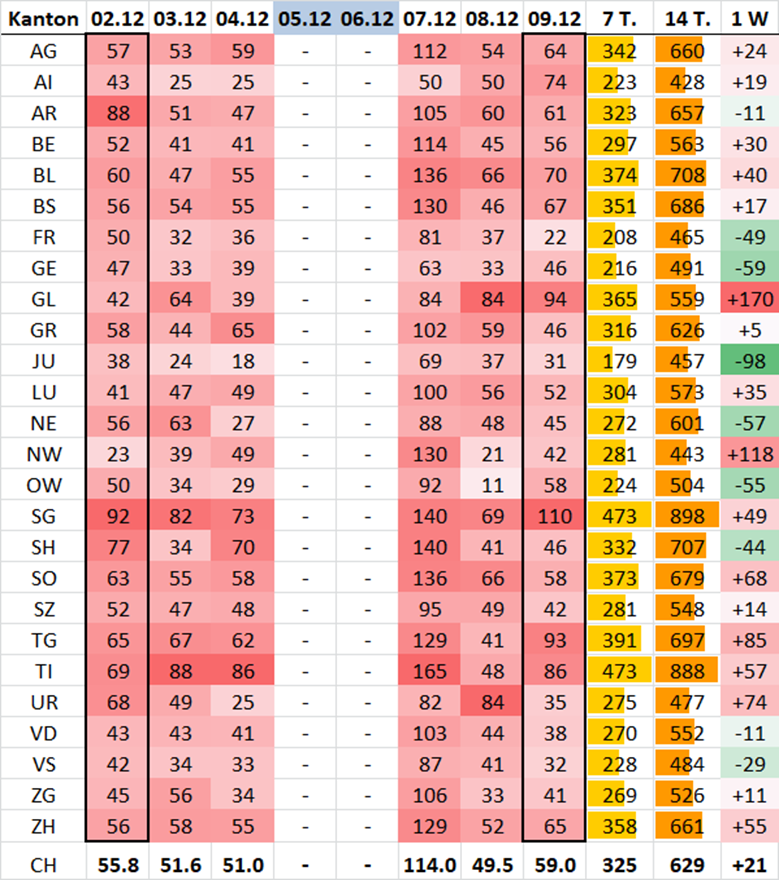 Die 9'809 neu gemeld. Fälle setzen sich zus.: