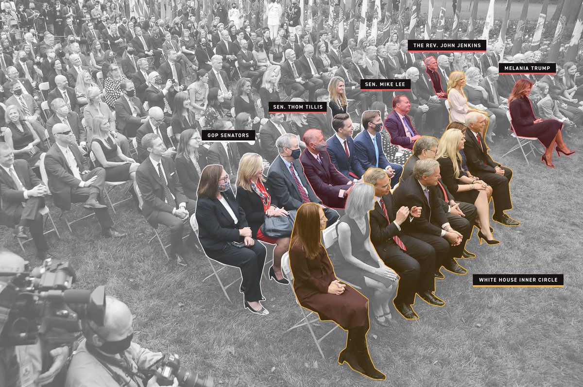 אנחנו מדברים על אירוע הדבקה של צמרת הממשל האמריקאי. נמצאים שם כולם. הנשיא, אישתו, המשפחה ״המלכותית״, סנאטורים, סגן הנשיא, שר המשפטים, השופטת עם 7 ילדיה. בלי מסיכות, מתוך אידיאולגיה! זאת התרסה מכוונת של המפלגה השלטת כנגד ההמלצות של טובי המדענים. הנה מבט על כל הצמרת, רובה נדבקה