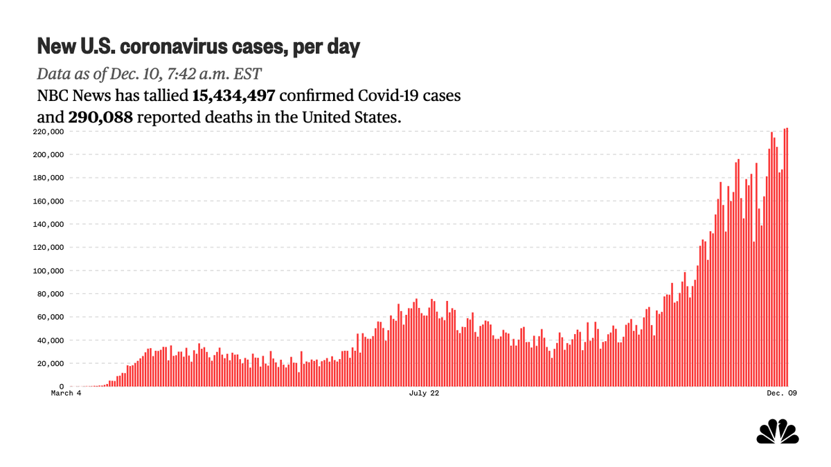 The US set single-day records in both reported coronavirus cases (222,994) and reported coronavirus deaths (3,103) on Wednesday, per @NBCNews count.