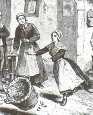 Vuosi 1846 oli vasta alkanut, ja lunta sateli. Kylän nuoret naiset olivat kokoontuneet ulkotöiden puutteessa sisään ompelemaan hansikkaita.