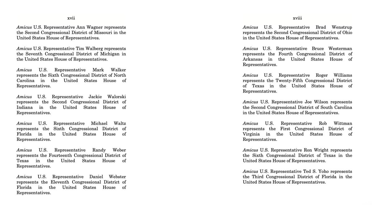 🚨🚨⚖️JUST IN: A *new* amicus has been filed that increases to 126 yesterday's number of 106 Republican House members who now support Texas' bid to overturn President-elect Joe Biden's win in the Supreme Court. Here's the new list, with the 20 additional GOP members👇