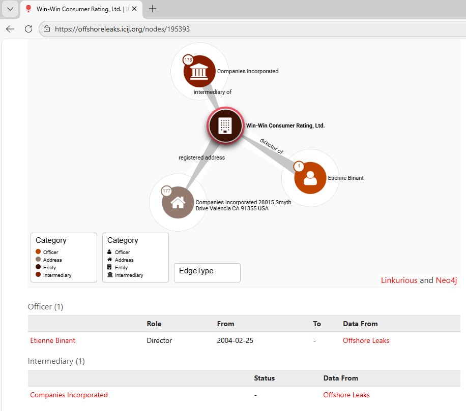 Etienne Binant apparait aussi comme directeur depuis 2004 d'une autre société Offshore "Win-Win Consumer Rating, Ltd" établie dans les îles vierges britanniques
