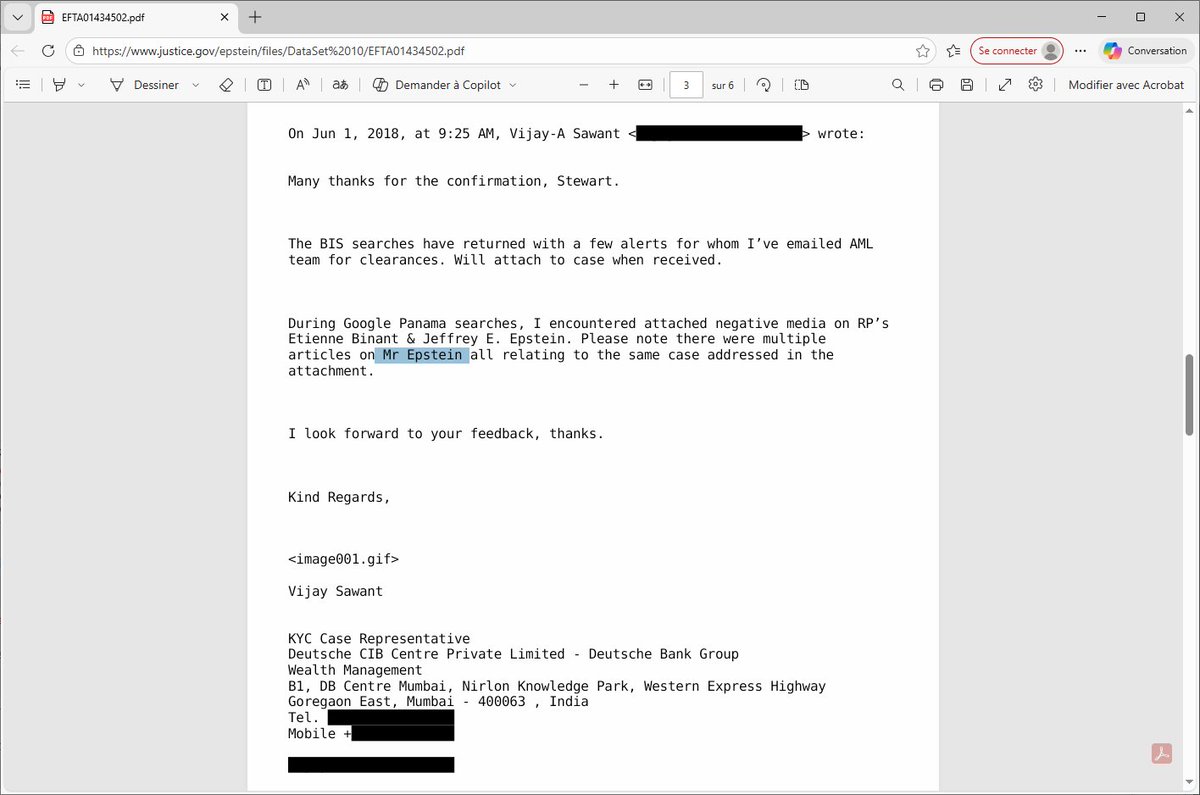Apparemment, c'est la Deutsche Bank qui avait fait la recherche en 2018 du post précédent sur Etienne Binant montrant qu'il dirigeait une société offshore.