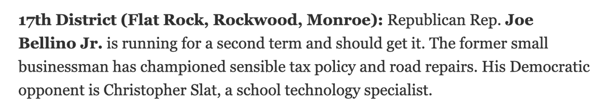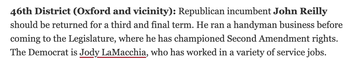 Starting to scrape the bottom of the barrel here... Rep. John C. Reilly was endorsed because he "ran a handyman business" and in the #MILeg "has championed Second Amendment rights." Not sure what any of that has to do with being a State Rep!