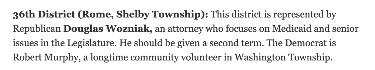 The final wannabe election thief endorsed by @DetNewsOpinion was Doug Wozniak. He earned their support because he "focuses on Medicaid and senior issues in the Legislature." Okay!
