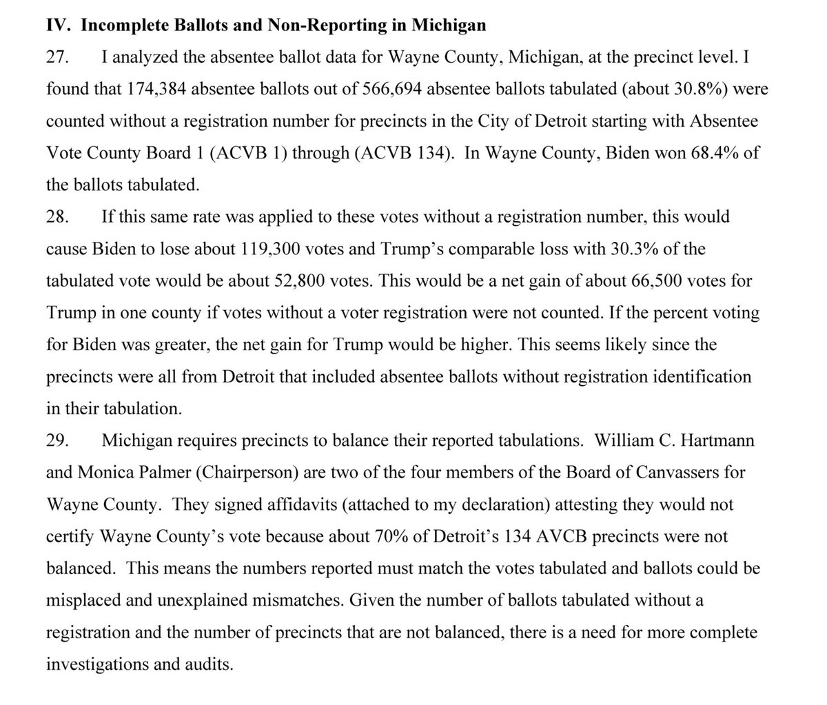 The brief signed by Michigan lawmakers alleges “more than 173,000 ballots in the Wayne County, MI center that cannot be tied to a registered voter.” Can anyone who signed it explain what this means?