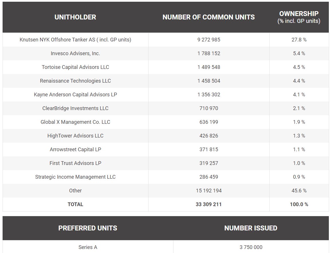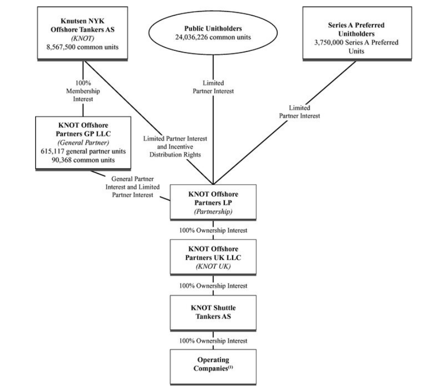Knot Offshores Partners se formó en 2013, con forma jurídica de sociedad limitada, para operar en el segmento de shuttle tankers. Este tipo de barcos actúan como una "tubería móvil", conectando plataformas petroleras offshore (perforación en alta mar)