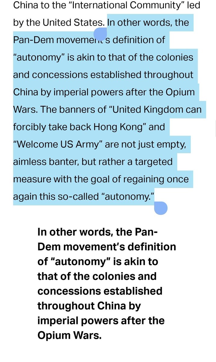 The Hong Kong "democracy movement" co-opts the language of "self-determination" & "autonomy" as a cover to bring HK more under Western colonial rule and to maintain Hong Kong as a capitalist imperialist base through which the West can attack China.