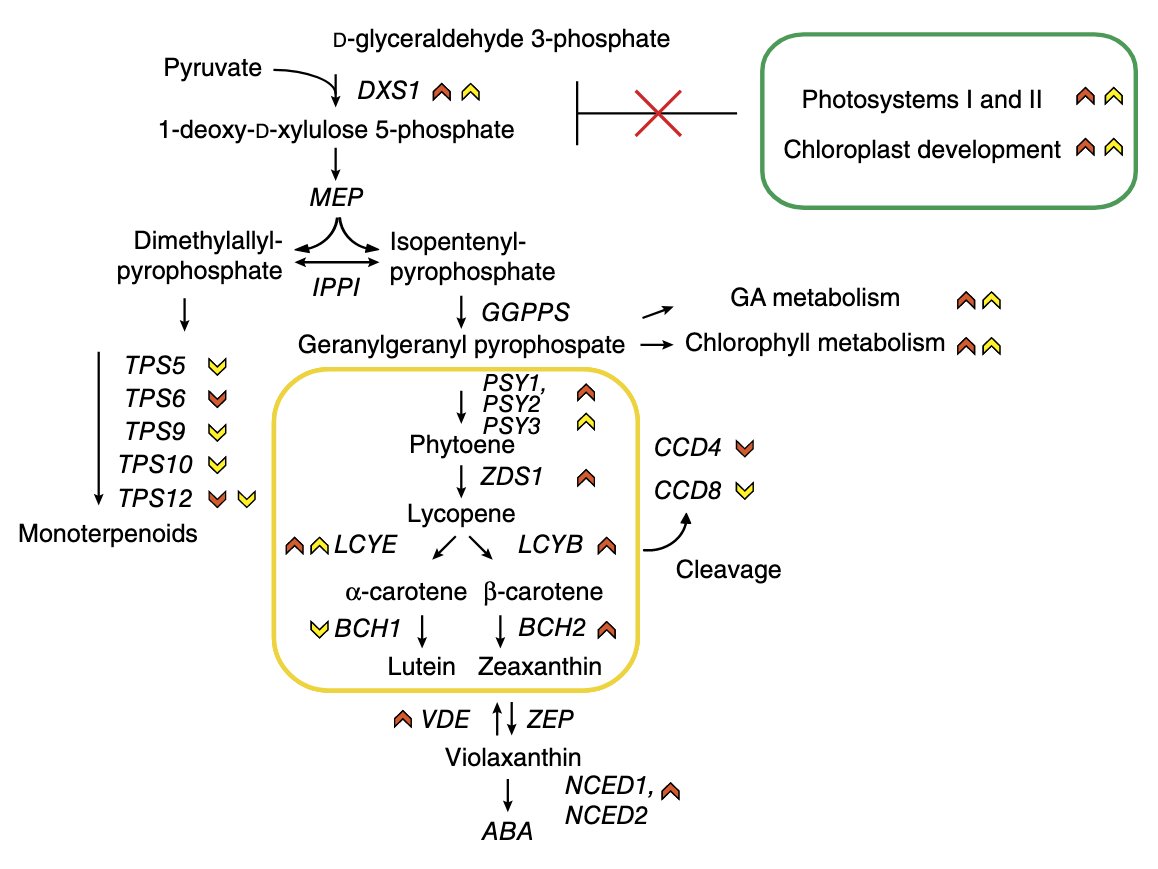 La 2e question était "Combien de gènes contrôlent la couleur actuelle orange ?" ... la réponse ne repose pas que sur la production des carotenoides mais bien sur la capacité à les accumuler !
