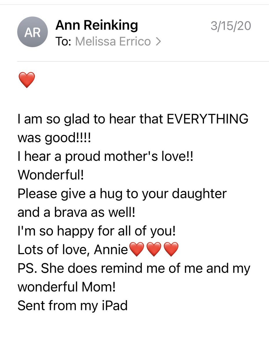 What an incalculable loss. This is a small glimpse of the warmth and magic of #AnnReinking - here to my 11 year old this year, always generous, always widening the circle of love & joy. RIP Annie. I am torn apart to say goodbye.
