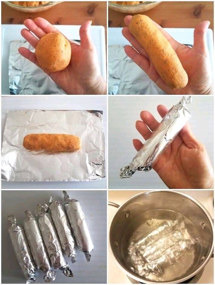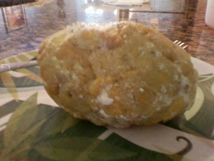 Bolas. Les haces un hueco en el medio con tus dedos y rellenas con un Guiso, carne, pollo, pescado o queso y con tus manos mojadas o untadas de aceite cierras. Puedes comerla así, pero si quieres ahora puedes freir, para q quede más crujiente. #ElFogon