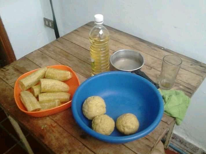 Se cocinan los plátanos en agua alrededor de 15 minutos, luego se sacan y escurren. Se pasan al pilón y se empieza el proceso d martillar, agregándole al aceite y la sal. Una vez q la textura al tacto este uniforme. 👇