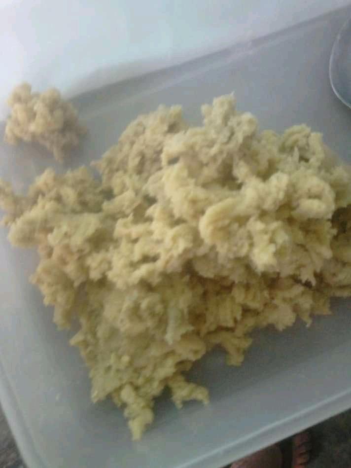 Mismo procedimiento d cocinado del platano. Ahora en un recipiente aplastas hasta tener un puré, si tienes molino pasas por el. Separas en