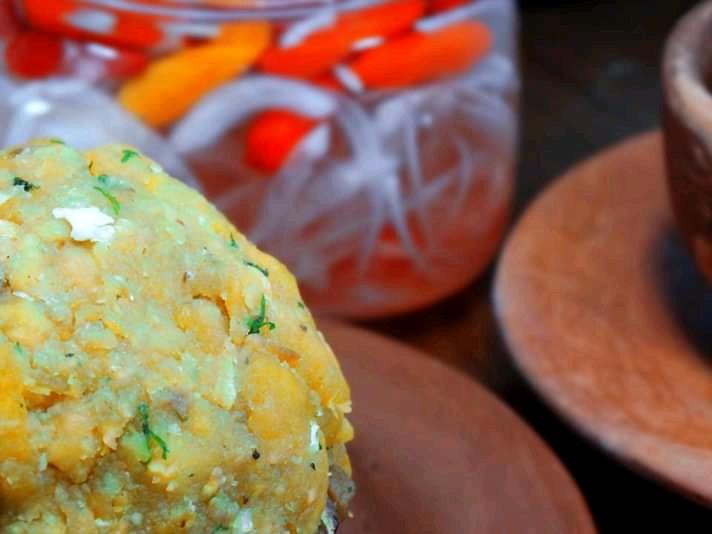 Queda como un puré y se, sirve así... Se come como acompañante de guisos y sopas, normalmente se come con las manos.