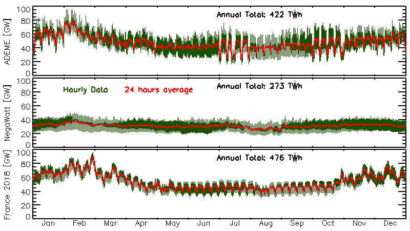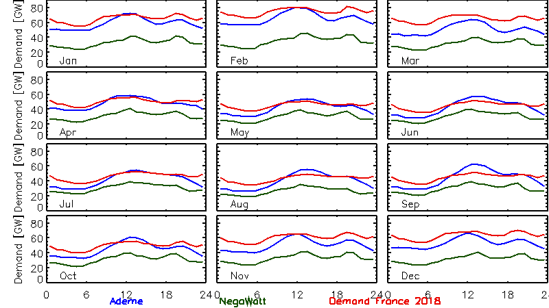 Sur la figure, vous voyez que la variabilité diurne de la conso (courbes vertes) est plus forte dans le scénario de l'Ademe que pour ce qui est constaté aujourd'hui (en bas). Pourquoi ca ?