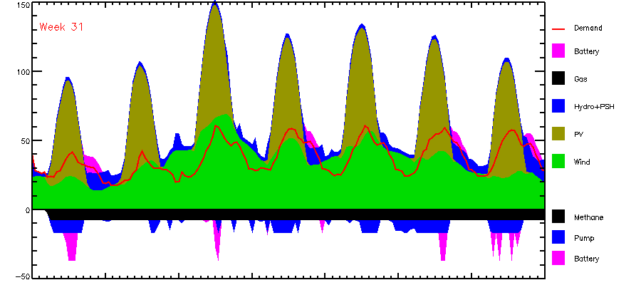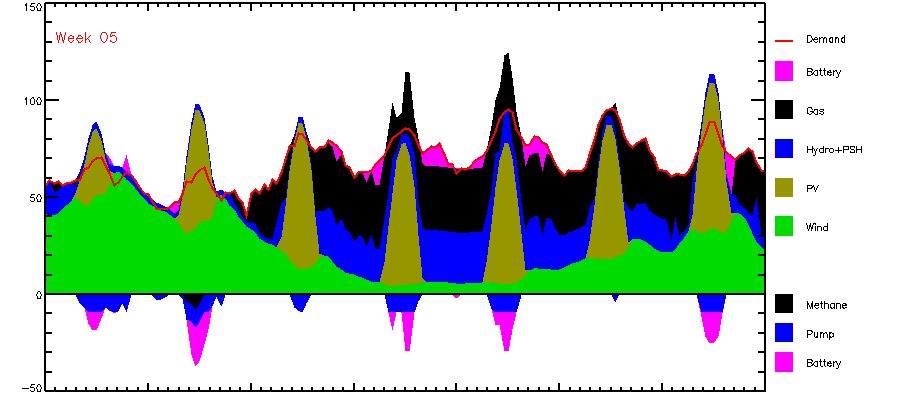 Et là avec une semaine plus critique en hiver. Ca passe grâce au gaz de synthèse, mais aussi grâce au solaire PV car le facteur de charge supposé est élevé comme déjà discuté plus haut.