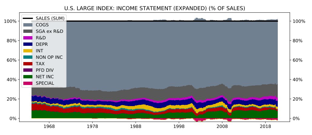 The above tweet is the "income statement" of the S&P 500 from 1963 to 2020. Here's everything expressed as % of sales, with special items and non-operating income included in the graphic: