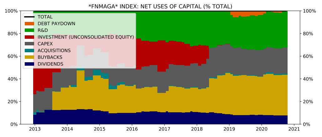 Uses of Capital. Obviously huge R&D spend, and also big buyback increase starting several years ago from $AAPL.