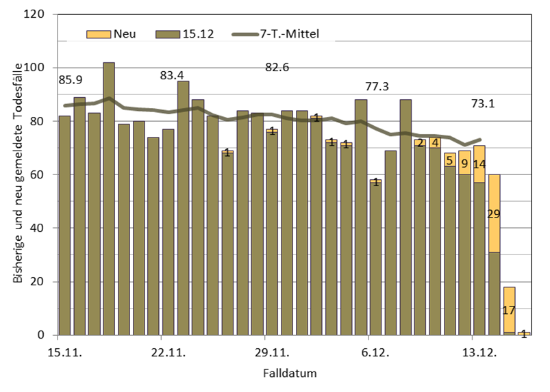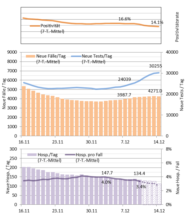 Epidemiologische Kurve der letzten 4 Wochen (bis 14.12./10.12.):