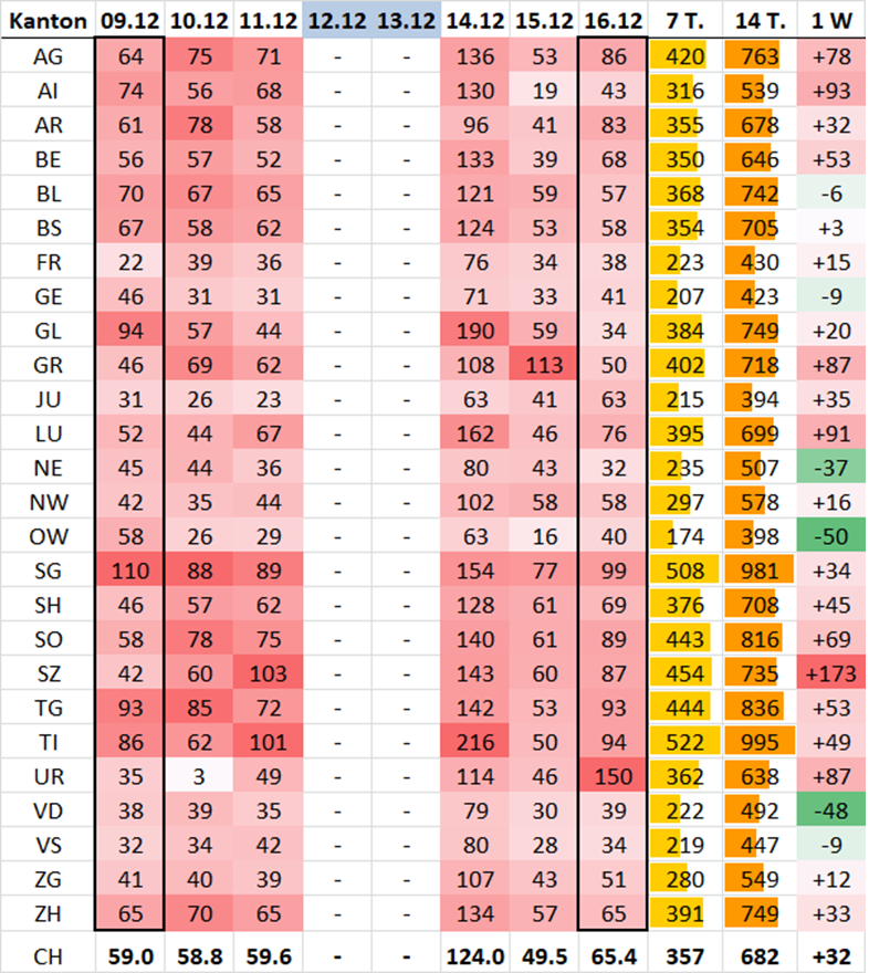 Die 4'271 neu gemeld. Fälle setzen sich zus.: