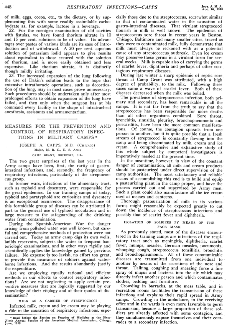 Pero me ha llamado especialmente la atención cómo ya en 1918 Joseph Capps ya nos advertía del uso de la mascarilla.