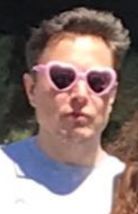 There is an extra shadow on his shirt at the front, In this shadow you can see clearly he is wearing sunglasses, but not the heart shaped ones.