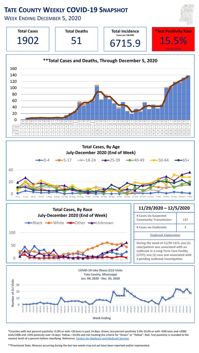 Here is @msdh's most recent COVID-19 data snapshot for Tate County, showing that the county had surging pandemic numbers as of December 5, although the county is in a significantly worse crisis now, less then two weeks later: 9/