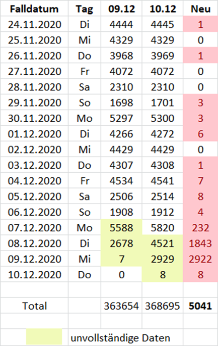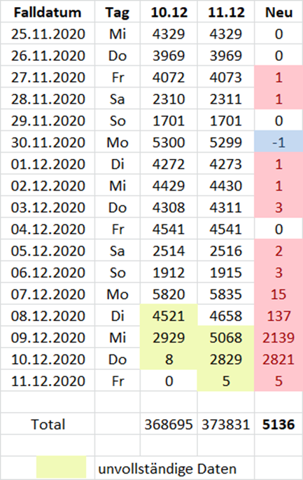 Die Fallzahl ist höher als an den letzten zwei Fr, wo 4'312 und 4'382 gemeldet wurden.