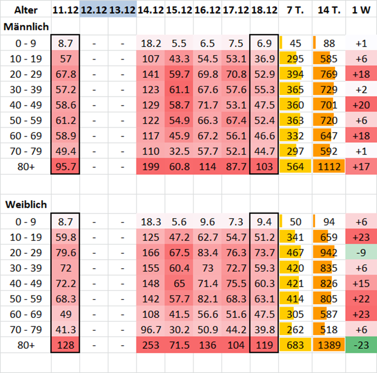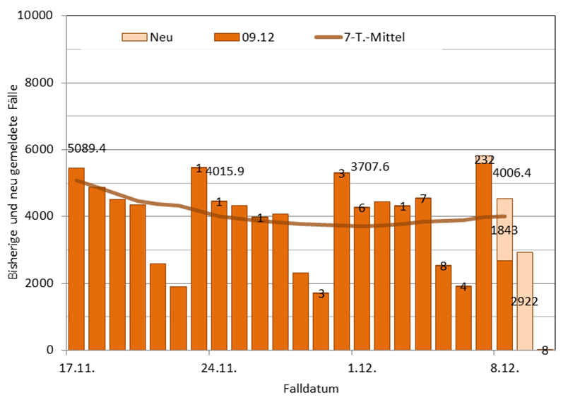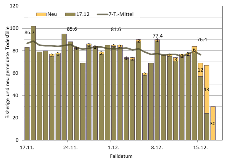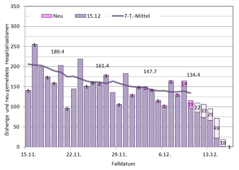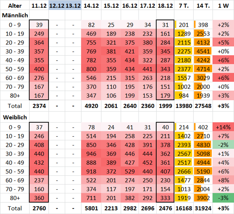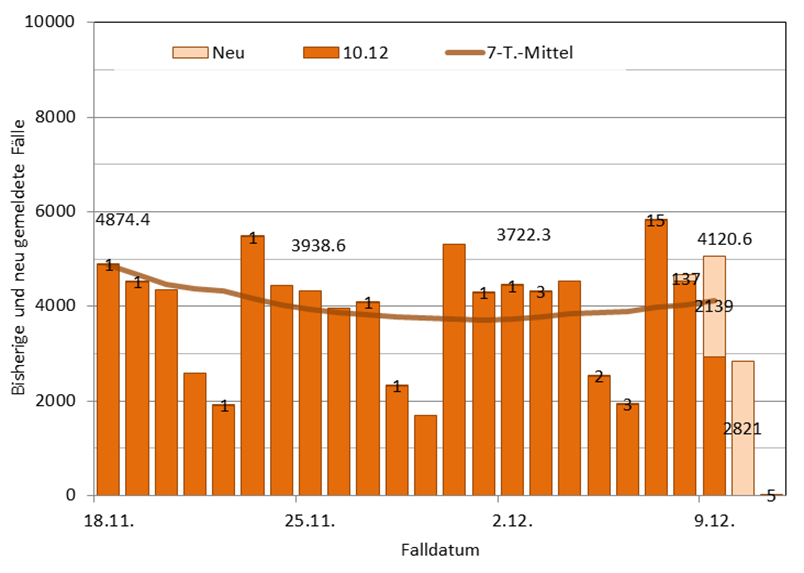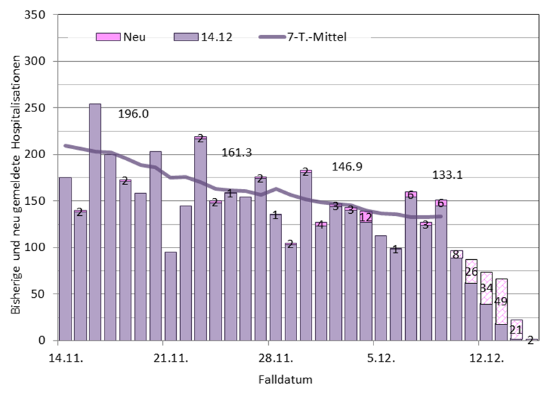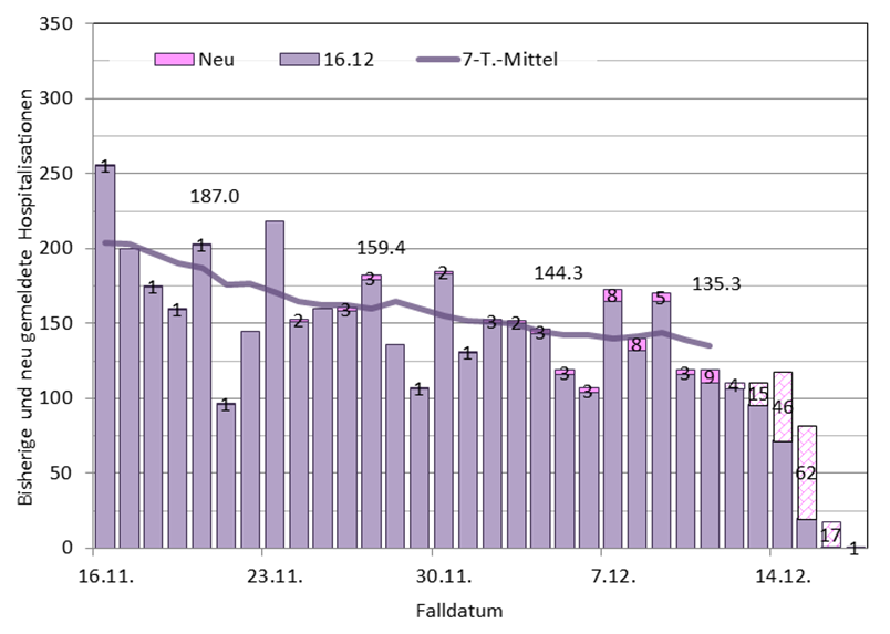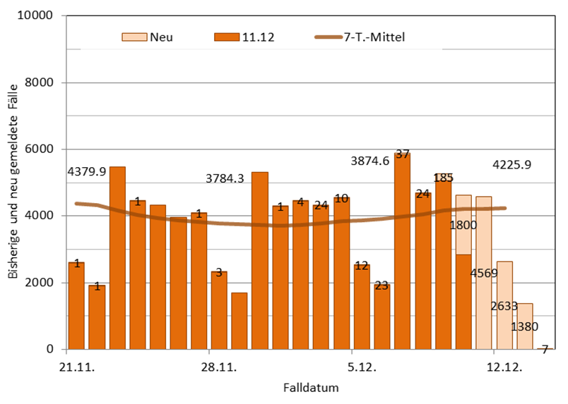 Epidemiologische Kurve der letzten 4 Wochen (bis 16.12./12.12.):