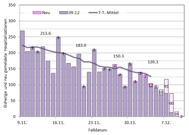 Die 216 neu gemeld. Spitaleintritte (neue Hospitalis.) setzen sich zusammen: