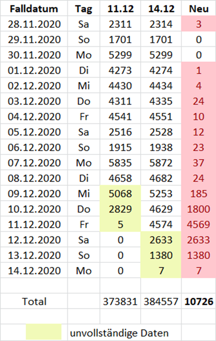 Die 10'726 neu gemeld. Fälle setzen sich zus.: