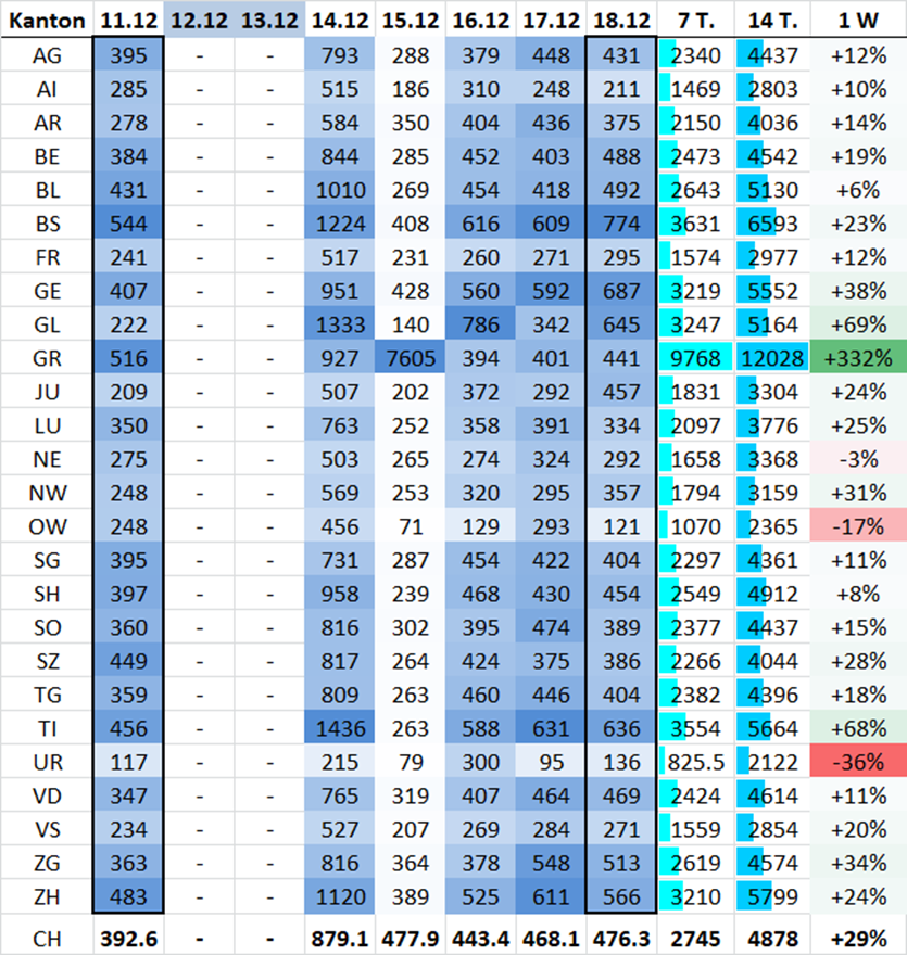 Die 4'271 neu gemeld. Fälle setzen sich zus.: