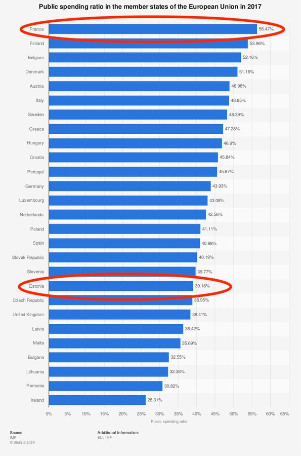 Sur 20 ans, l'Estonie est 2ème pays à la plus forte croissance d'EU. Les dépenses publiques y représentent 39% du PIB (vs 56% en FR). Elle est 1ère dans PISA pour l'Europe et 3ème dans le monde. Le centre d'expertise sur la cyber-défense de l'OTAN s'y est installé en 2008