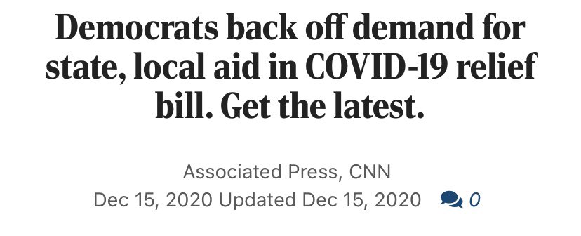 Why does this matter? This👇 is why. The delta between the current bill and what was achievable is around $300B. That's a *lot* of aid, desperately needed by many. Dem leaders voluntarily jumping down from the $1.8 baseline to $900B made it easy for McConnell to cut off this aid.